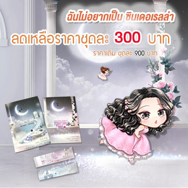 - ฉันไม่อยากเป็นซินเดอเรล่า 2 เล่มจบ ชุดละ 300 บาท ( ราคาเต็ม 900 บาท) / แถมที่คั่น 2 ลาย
